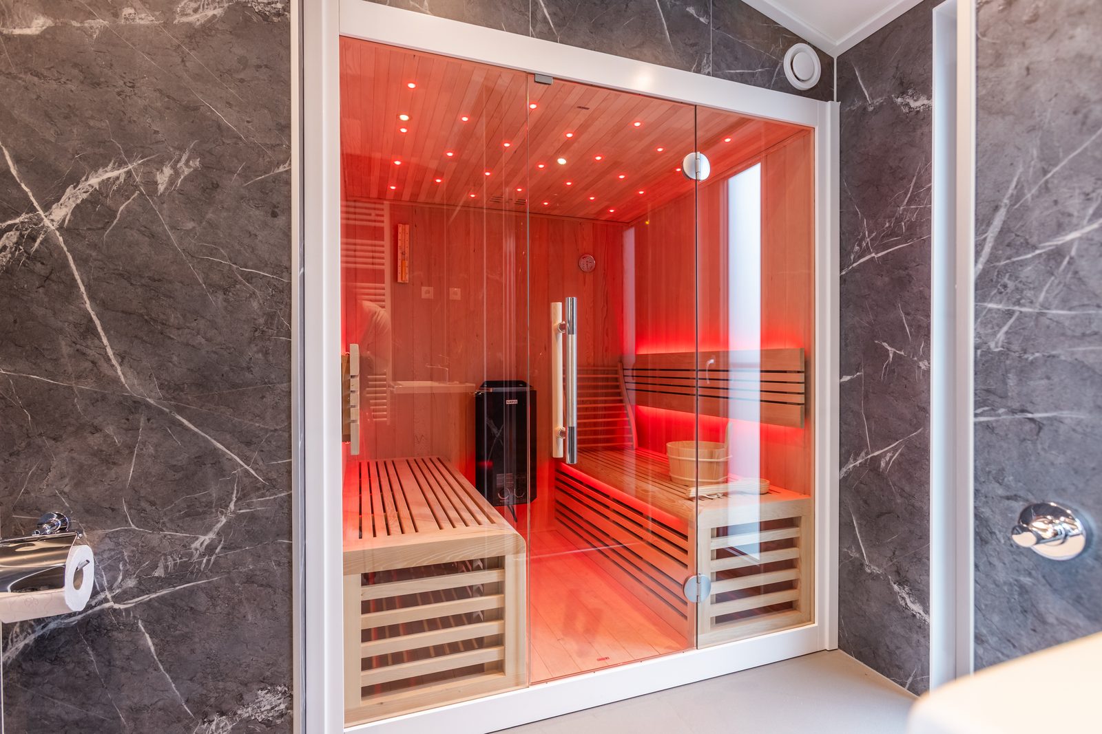 Außerdem gibt es zwei separate Toiletten für zusätzlichen Komfort.