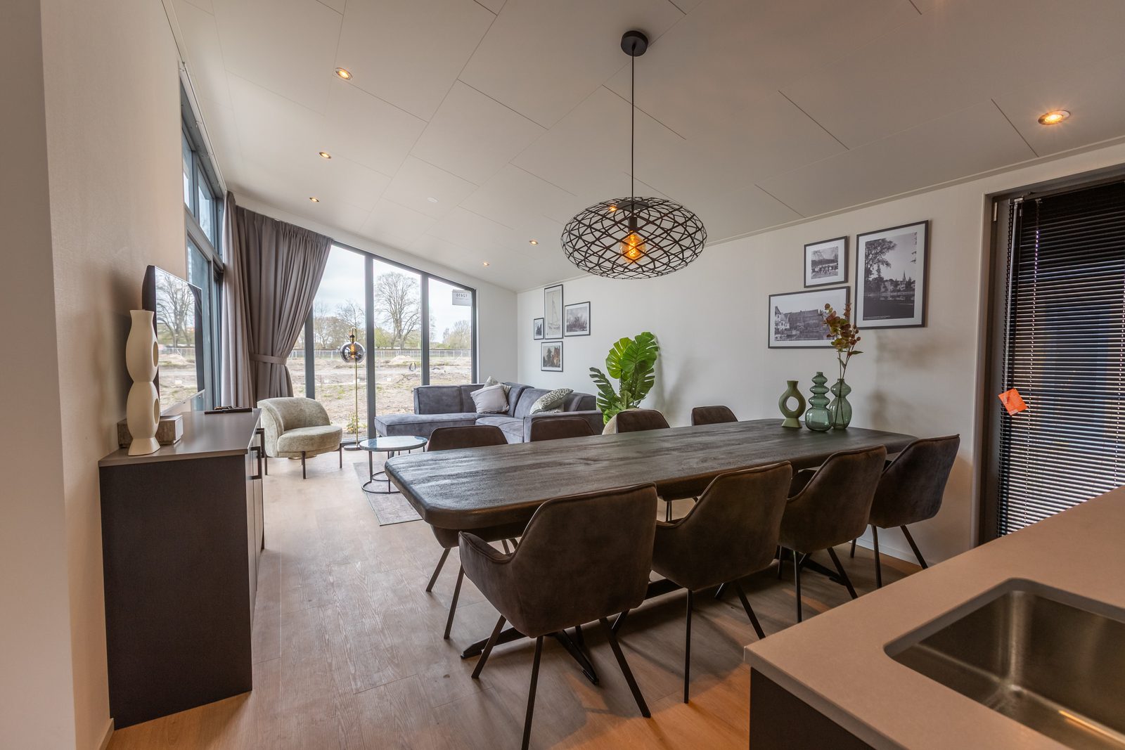 Die geräumige offene Küche ist mit allen Annehmlichkeiten ausgestattet, darunter ein Kochfeld, ein Geschirrspüler, eine Kühl-Gefrierkombination, eine Mikrowelle und ein Backofen. Einzigartig an diesem Haus sind der Quooker und der Weinkühlschrank, mit denen Sie Ihre Lieblingsgetränke bei perfekter Temperatur servieren können.