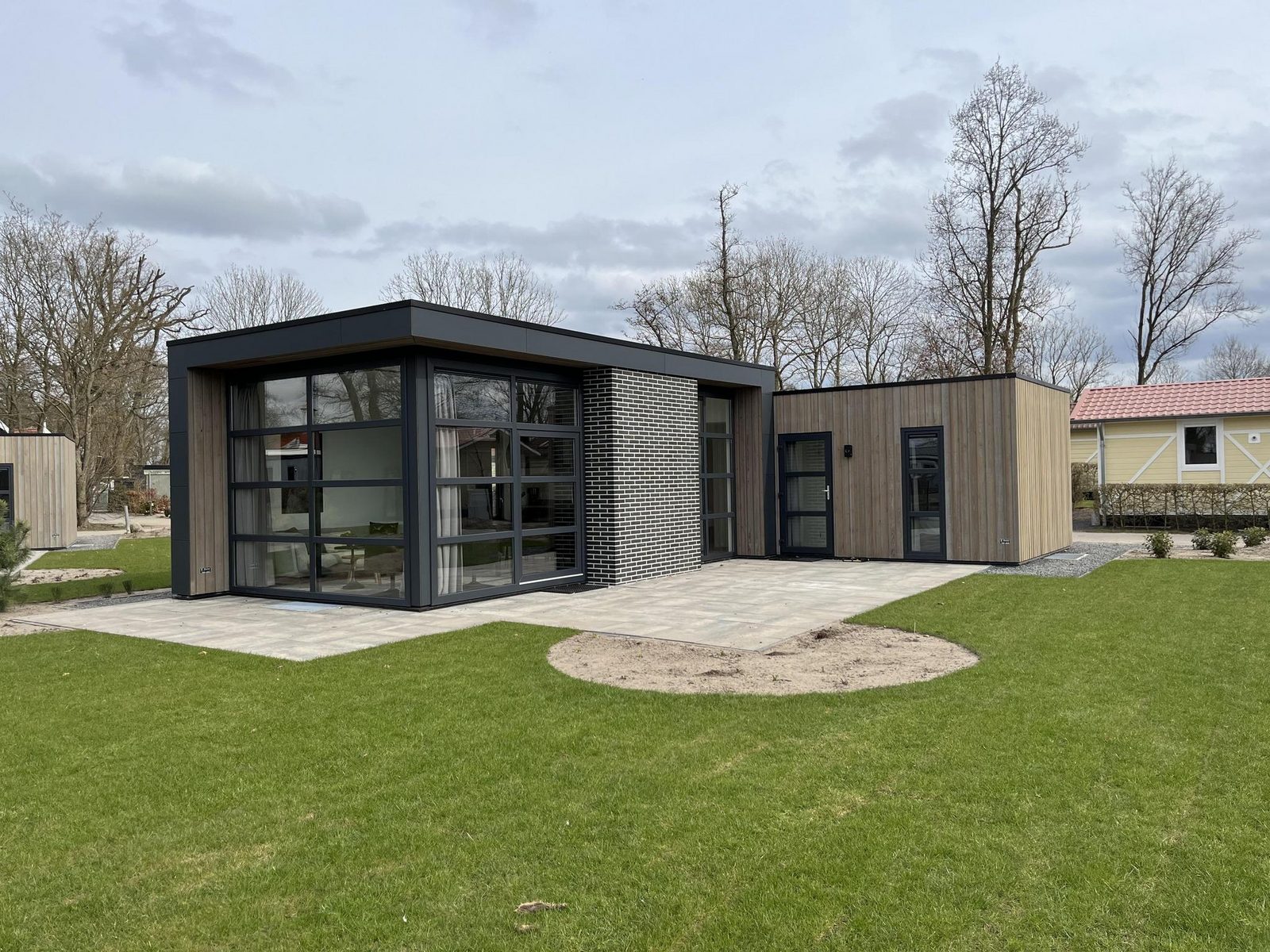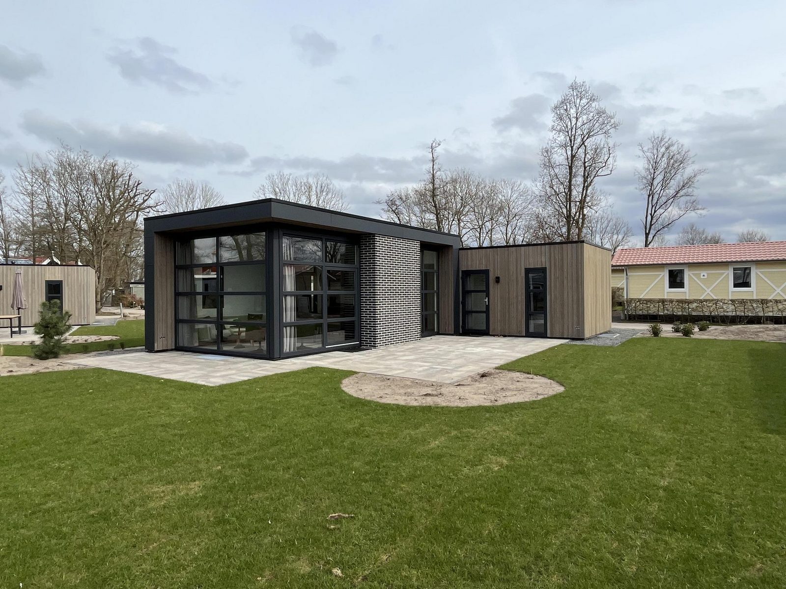 Das L-Cube 6 ist eine geräumige und komfortable Unterkunft in moderner Atmosphäre. Das freistehende Chalet ist ebenerdig und kann bis zu 6 Personen beherbergen. Das ansprechend eingerichtete Wohnzimmer besteht aus einer Sitzecke mit Fernseher, einer Essecke und einer Küche mit u.a. einem Geschirrspüler, einer Kombi-Mikrowelle und einer Senseo Maschine oder Filterkaffeemaschine. L-Cube 6 hat 3 Schlafzimmer, 2 mit 2 Einzelbetten und 1 mit einem Etagenbett. Das Badezimmer verfügt über ein Waschbecken und eine Duschkabine. Außerdem gibt es eine separate Toilette im Haus. Im Garten lädt eine gemütliche, möblierte Terrasse zum Verweilen ein. Weitere Extras des L-Cube 6 sind der eigene Parkplatz für ein Auto sowie kostenfreies WLAN.
